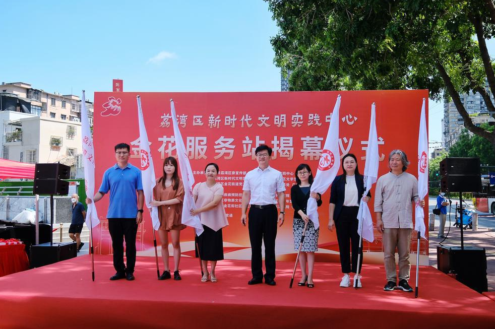 哪里有需要,哪里就有文明实践!7月6日,位于陈家祠东侧广场附近的荔湾区新时代文明实践中心金花服务站(以下简称“金花服务站”)正式揭牌。