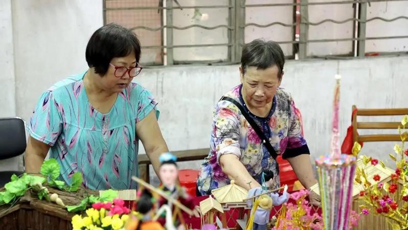 进入七社饭堂,各式各样栩栩如生的鹊桥景观、七夕公仔、特色建筑等手工艺品映入眼帘,非常吸睛。市民游客在这里不仅仅能感受到浓郁的乞巧文化,还能近距离与精美的工艺品来一场时空对话。