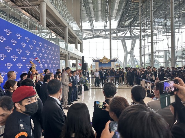 9月25日早上10时15分,搭乘亚洲航空XJ761航班的近100位中国游客,从上海飞抵泰国曼谷,受到了当地热情迎接。他们将进行美丽的泰国之旅。该批游客是自泰国对中国游客实行免签制度后抵达的第一批中国游客。