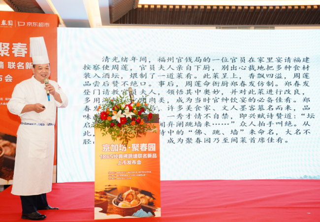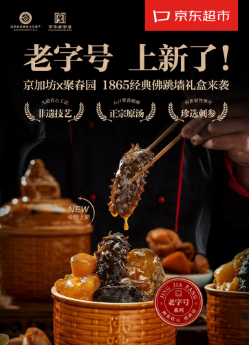 10月26日,京东超市联合中国传承佛跳墙历史最悠久的企业——聚春园推出首款联名预制菜——京加坊·聚春园1865经典佛跳墙,将正宗佛跳墙带入寻常百姓家。为了保障佛跳墙菜品品质,京东超市联合聚春园启动首个“佛跳墙优选标准”,这款联名产品依托标准制作。