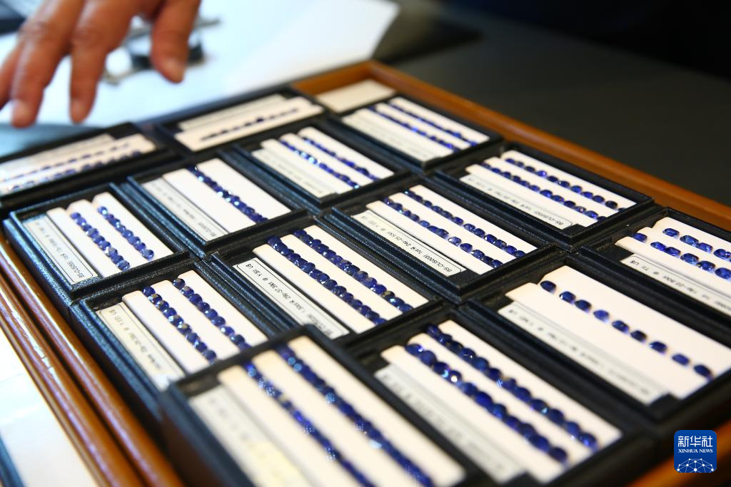 10月23日,从事珠宝生意的泰籍华裔李嘉淳在泰国曼谷向记者展示蓝宝石。新华社记者 孙玮彤 摄?广州蓝色曼谷spa
