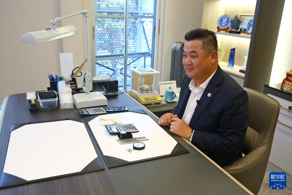 10月23日,从事珠宝生意的泰籍华裔李嘉淳在泰国曼谷接受新华社记者采访。新华社记者 孙玮彤 摄。
