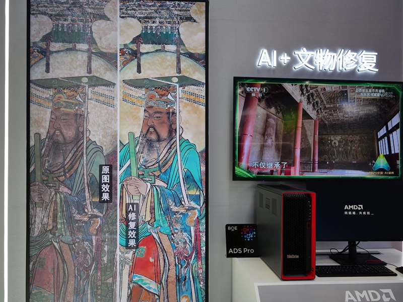 11月5日在第七届进博会技术装备展区AMD展台拍摄的“AI+文物修复”技术展示。新华社记者 王益亮 摄!