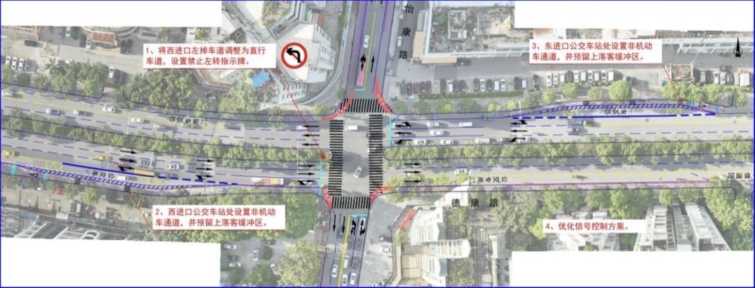 其中,针对白云区德康路-怡康路交叉通组织,部门将在该路口范围逐步实施西进口禁止左转、公交站段设置连续性非机动车道及乘客下车缓冲区等改造措施,以规范机动车、非机动车通行秩序,消除安全隐患,缓解交通拥堵。