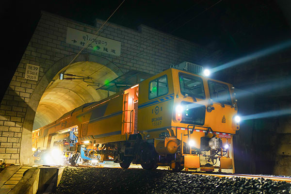 人民网曼谷12月7日电(记者孙广勇、通讯员周星)凌晨1时10分,在位于老挝琅勃拉邦地区的中老铁路磨(丁)万(象)段沙嫩山2号中桥上,一辆接触网轨道车缓慢移动,明亮的灯光刺破黑夜。